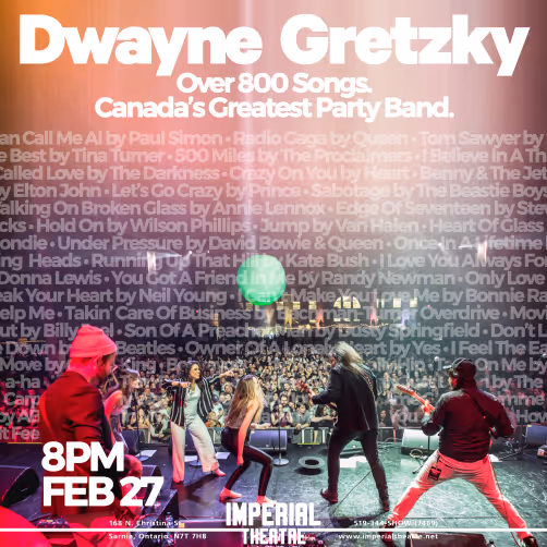 Dwayne Gretzky is Canada’s greatest party band and a can’t miss live music experience celebrating classic hits from the 70s, 80s and 90s.